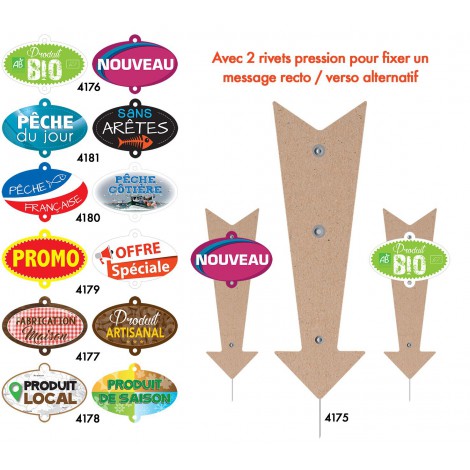 Both sides Ovale label - PRODUIT LOCAL / PRODUIT DE SAISON - 11x8cm for Arrow label "NATURE" (pack of 10)