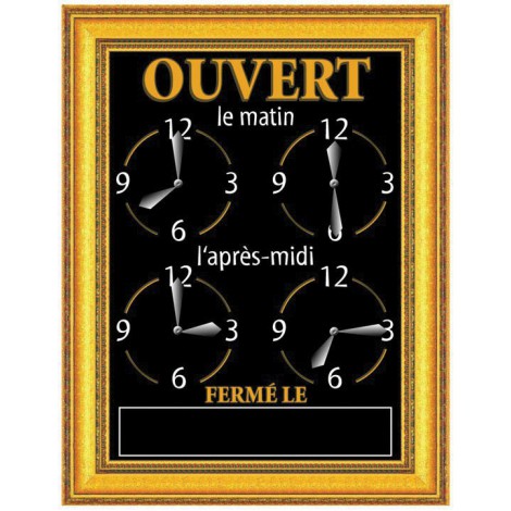 Opening hours - 15x20 cm - Nylon thread for hanging - black and golden paint frame (per unit)