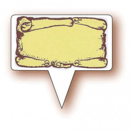 SParchemin label with text - plastic pin 5.5x4.5 cm- per unit