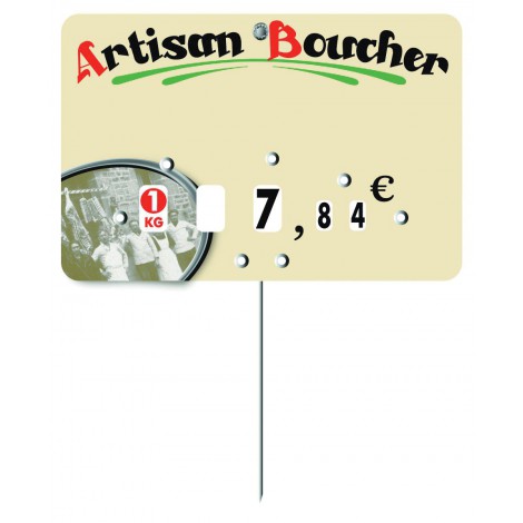 Per unit "Artisan Boucher" Print on 75/100° crystal PVC With text 12x8 cm Snap rivet Wheels and stainless steel pin