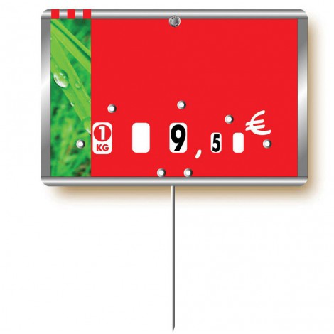 Label, printing on 75/100° crystal PVC -text, wheels, disk, stainless-steel pin Sold individually Red 12x8 cm