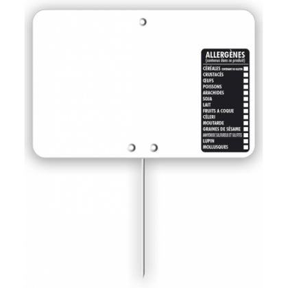 Étiquette « TOUT COMPRIX » - à texte - sans roulettes - pique inox - 8x6 cm (À l'unité)
