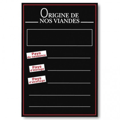 Board “Origine de nos viandes” - black, & red frame - 65x45 cm - (per unit)
