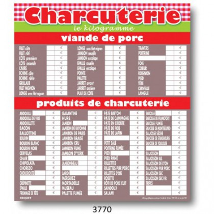 Butcher's Pricelist - 80X70 cm - +nylon thread for hanging (Per unit)