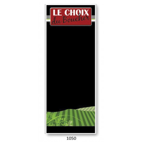 Per unit 60x150 cm 4 colors print both sides on 6mm thick composite material, gloss black painted Mecano feet weld on springs Write with a water removable felt pen (we recommand ILLUMIGRAPH’ ones) Very resistant to scratch Very good mechanic resistant to sun, wind, bad weather (doesn’t arch)
