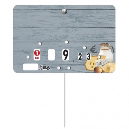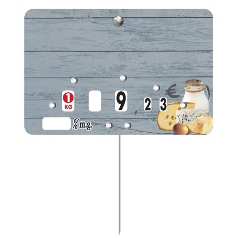Per unit Label - AZUR 4 colors print on 75/100° crystal PVC 10.5x7cm Text Wheels + % mg Stainless steel pin