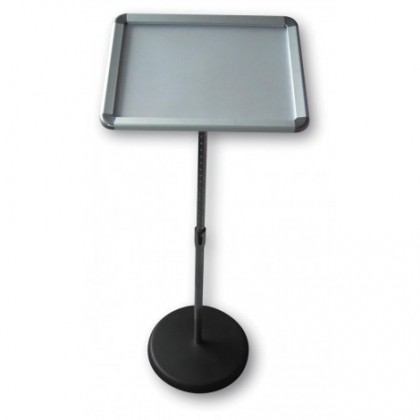 Lectern, aluminium clickable frame, without light, delivered with a crystal PVC sheet Sold individually Metallic grey 47x33 x (from 80 to 120 cm)