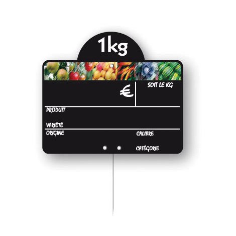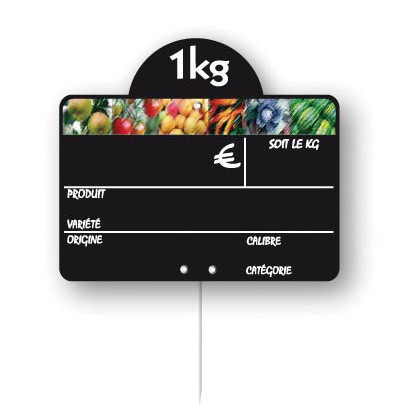 4 colors printed on black 75/100°PVC label, disk, stainless-steel pin Packs of 10 4 colors + chalkboard 15x10cm
