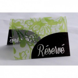 Pack of 10 Easel - DENTELLE 7x5 cm "Réservé" Decorations in transparency Print green and black on 75/100° crystal PVC