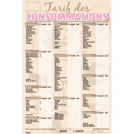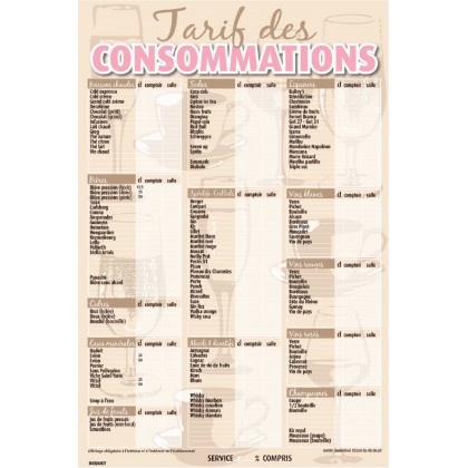 Board - “Tarifs des consommations courantes” - 30x40 cm - Beige/pink - + nylon thread for hanging (per unit)