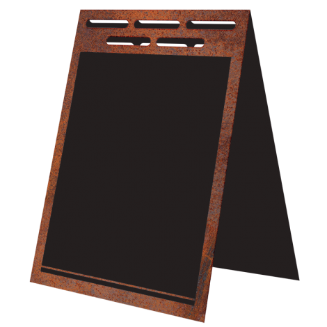 Robuste et stable grâce sa chaînette centrale de maintien, il est dédié à vos affichages commerciaux en extérieur. Grâce à ses 2 faces ardoisées, ce chevalet vous garantira une visibilité maximale. Fabrication française.